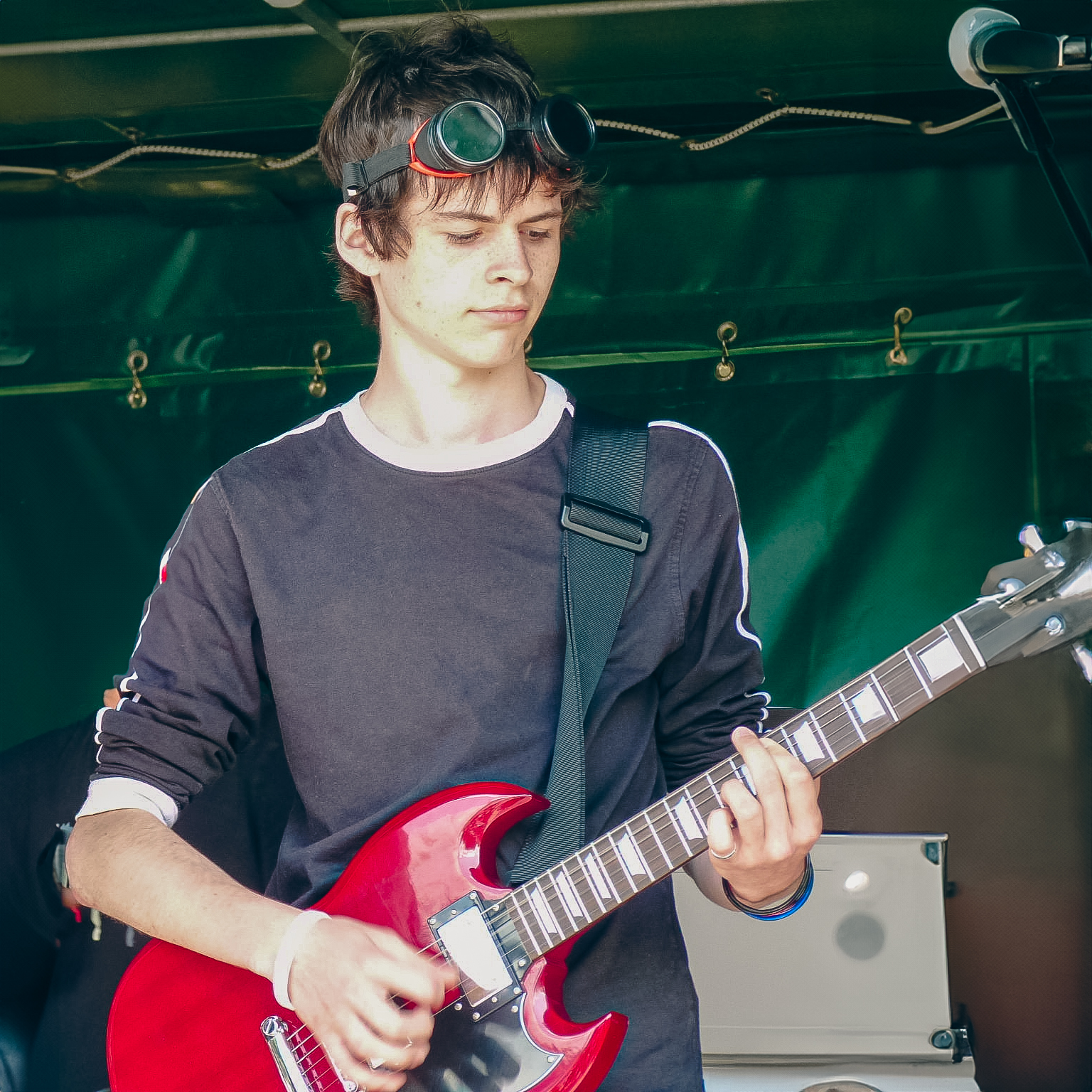 Quand j'étais jeune, la musique était une partie importante de ma vie. Avec ma mère j'écoutais des albums de Georges Brassens et avec mon père, c'était les riffs endiablés d'AC-DC. Imaginez un gamin avec un casque sur les oreilles passionné par la musique. Mais ce qui m'a le plus influencé, c'est mon oncle qui est DJ. J'écoutais ces albums avec des étoiles dans les yeux. A tel point que mon adresse email, c'était "djtonio". Un peu fanboy, je sais. Mais finalement, c'est la guitare qui m'a séduit. Pour moi, la guitare, c'était la puissance, la classe. Et je suis alors aller me former dans l'école de mon village avec un super prof passionné. Mais j'en voulais plus, alors j'ai continué au conservatoire pour approfondir mes connaissances, près de chez moi, en Bretagne.